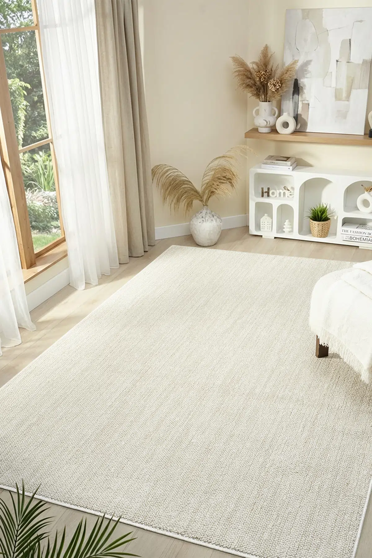 Petra Koleksiyonu halı, sade ve modern tasarımıyla yaşam alanlarına zamansız bir şıklık kazandırır. Polyester iplikten üretilen yüzeyi, dayanıklı ve yumuşak dokusuyla konforlu bir kullanım sunarken, jüt tabanı sayesinde zemine sağlam tutunur ve formunu uzun süre korur.